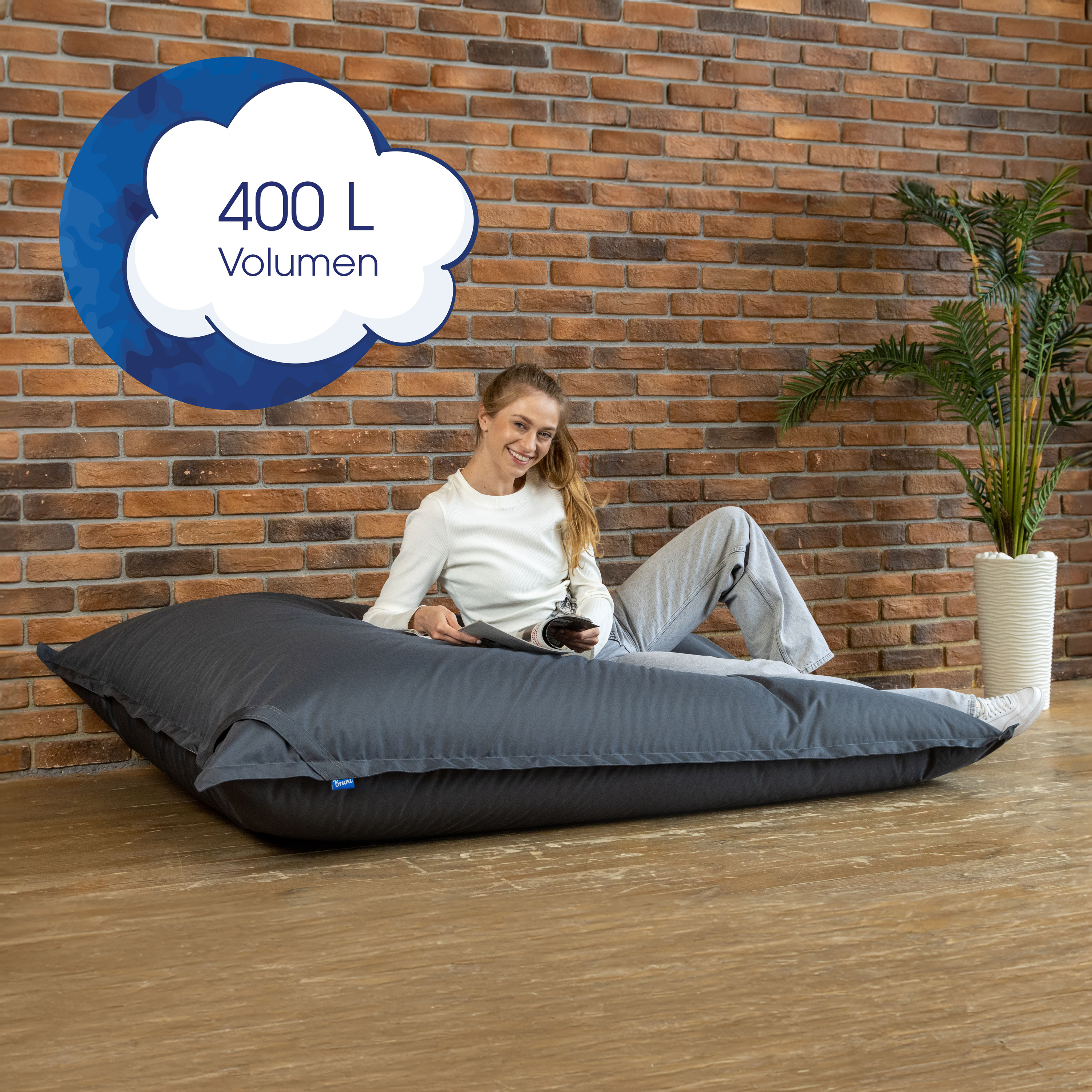 Einfach mal relaxen? Drinnen oder draußen? Allein oder zu zweit? Mit dem Bruni Lounge Sitzsack-Sofa bleibst du flexibel. Nur hinsichtlich Komfort und Qualität ist es kompromisslos - Hauptsache Entspannung! Technische Facts zur Bruni Lounge – Sitzsack-Sofa für 1-2 Personen: Sitzsack Lounge – liebevoll in Bayern gefertigt & von Hand befüllt Sitzsack-Sofa Maße: 160 x 100 x 60 cm Bruni Lounge – leicht mit ca. 8,6 kg Bruni Sitzsack Sofa in diversen Farben erhältlich Befüllung: lebensmittelechte EPS-Perlen und Schaumstoff Flammhemmende Außenhülle gemäß EN 1021-1 Sitzsack Lounge mit wolkengleichem Sitzgefühl Garten Lounge als Sitzsack – auch im Wohnzimmer, Garten, Schlafzimmer oder Büro geeignet Indoor- und Outdoor-Sitzsack-Couch für 1-2 Personen Outdoor-Eigenschaften – 50.000 Scheuertouren, 5.000 mm Wassersäule, 4,5/5 UV-Beständigkeit Separate Außen- und (fix vernähte) Innenhülle – kein ungewollter füllmaterialbedingter „Schneefall“ Sitzsack-Lounge in bayerischer Qualität Das Sitzsack-Sofa wurde von unseren hauseigenen Sitzsack-Expert:innen im oberösterreichischen Innviertel entwickelt. In weiterer Folge gelangten die Ideen in unsere Näherei, wo das tragbare Indoor- und Outdoorsofa liebevoll genäht wird. Anschließend werden die Bruni Lounge Couches - wie all unsere Sitzsäcke - nach Auftragseingang mittels Öko-Strom per Hand mit lebensmittelechten FILLcloud-EPS-Perlen befüllt. Hochwertiger Schaumstoff sorgt für zusätzliche Stabilität und noch mehr Komfort. Die fertig befüllte Sitzsack-Couch gelangt dann fix fertig und dank kurzer Transportwege innerhalb weniger Tage zu dir nachhause. Unser Sitzsack-Sofa muss nur aus dem Karton genommen werden und schon kannst du auf deiner Bruni Lounge wie auf Wolken schweben. Indoor- und Outdoor-Sitzsack-Sofa – der große Allrounder Das Sitzsack-Sofa Bruni Lounge ist vielseitig einsetzbar. Hierzu trägt auch das so robuste wie komfortable Außenmaterial bei. Dank mehr als 50.000 Scheuertouren und einer hochwertigen PU-Beschichtung ist das widerstandsfähige Sofa besonders langlebig. Zudem glänzt die Außenhülle von diesem XXL-Sitzsack mit einer Wassersäule von 5.000 mm und einer UV-Beständigkeit von 4–5/5. Dadurch gilt das Material der Außenhülle unseres Sitzsack-Sofas als wasserfest (nicht jedoch die Reißverschlüsse, weshalb wir nicht empfehlen, die Bruni Lounge im Regen stehen zu lassen) und hält besonders lange seine kräftige Farbe. Auch beim Thema Brandschutz überzeugt die Bruni Lounge: Der Bezug ist flammhemmend nach EN1021-1 geprüft – ideal für Haushalte mit Kindern, öffentliche Bereiche oder einfach für alle, die Wert auf zusätzliche Sicherheit legen. Auch wenn du einmal ein Glas Wein über deine Bruni Lounge verschüttest, ist das für die 1–2 Personen-Couch kein Problem! Leichte Verschmutzungen können ganz einfach mit einem feuchten Tuch abgewischt werden. Robustes und komfortables Sofa für 1-2 Personen Die Sitzsack-Lounge von Bruni ist mit einer Größe von 160 x 100 x 60 cm optimal für 1-2 Personen geeignet. Die Sitzsackcouch ist als Fernsehcouch für 2 Personen, aber auch als Schlafcouch verwendbar. Auch im Garten ist das Sitzsacksofa vielseitig einsetzbar. Dank eines geringen Gewichts von nur ca. 8,6 kg kann die Outdoorcouch ganz einfach und ohne viel Kraftaufwand transportiert werden. Die Sitzsack-Lounge von Bruni ist aktuell in vielen Farben erhältlich: Grau, Blau, Blaugrau, Königsblau, Eisblau, Bordeaux, Eisgrau, Gelb, Grün, Minzgrün, Tannengrün, Hellbraun, Orange, Pink, Violett, Rot, Schwarz, Felsgrau, Türkis.