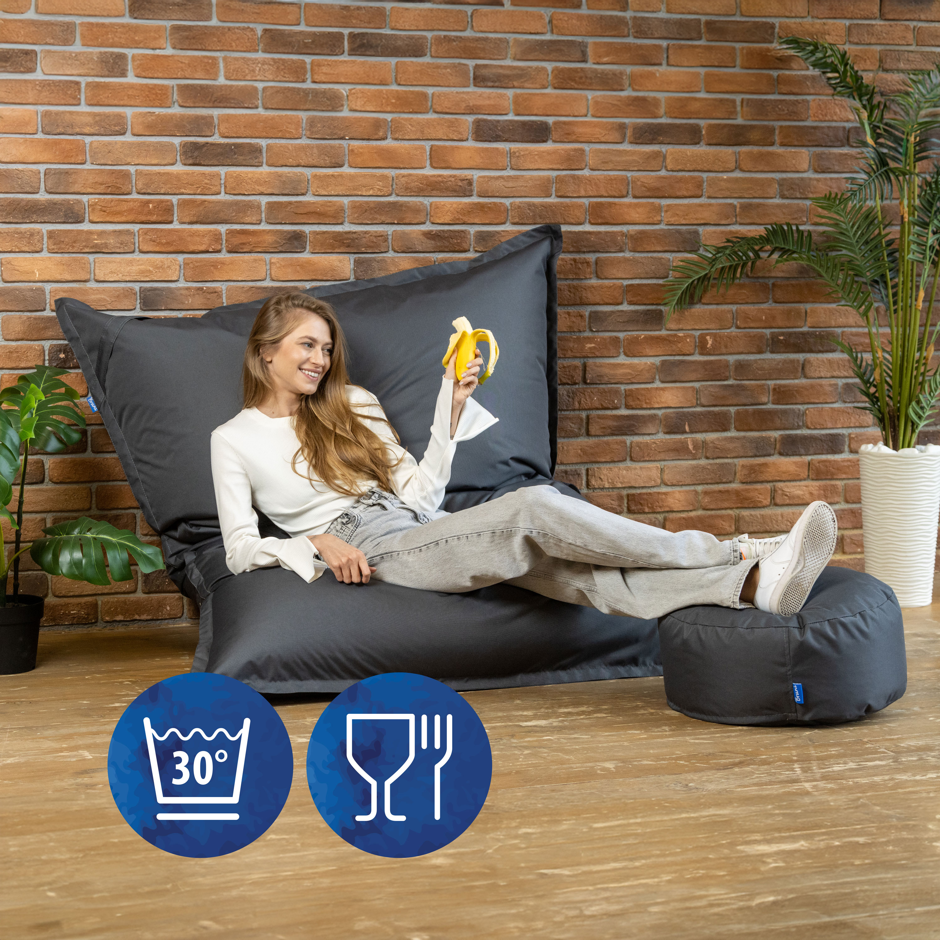 Bruni vereint bayerische Manufakturarbeit, österreichischen Stil und internationales Design. Auf Bruni-Sitzsäcken genießt du puren Komfort und kannst wie auf Wolken entspannen!